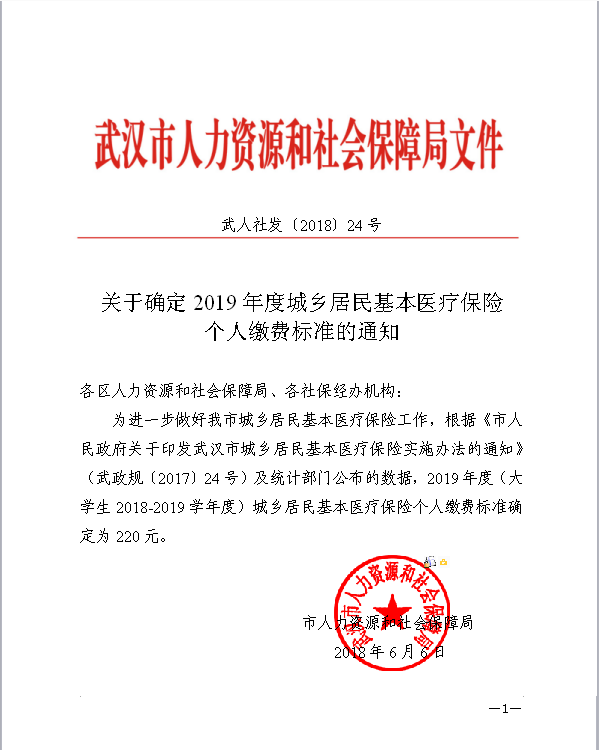 关于确定2019年度城乡居民基本医疗保险个人缴费标准的通知