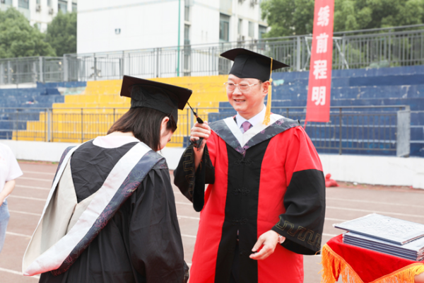 典礼上,校长卜诗桢深情寄语全体毕业生“做一个有担当的知行人“。一是做一个有担当的知行人,就要让责任随身而行。希望同学们始终敬畏责任、牢记责任、落实责任,履行好“天下兴亡、匹夫有责”的社会责任,履行好“功成不必在我,但功成必定有我”的集体责任,履行好为人子女、为人父母的家庭责任,履行好对自身行为负责、对自己生命负责的自我责任。二是做一个有担当的知行人,就要让本领跟上步伐。希望同学们增强“吾生有涯,学海无涯”的意识,把“要我学”变成“我要学”,避免“不知而盲”、“少知而迷”;牢记“博观而约取,厚积而薄发”的道理,不断追求理论的高度、思想的深度、专业的厚度、视野的宽度;掌握“认知践行,知行合一”的方法,学会运用历史思维、辩证思维、系统思维分析和解决人生中的问题,不断在实干中长“本事”,在磨砺中变“干练”。三是做一个有担当的知行人,就要让品德融入生活。希望同学们牢记习近平总书记的殷殷嘱托,自觉践行和弘扬社会主义核心价值观,善于从中华民族传统美德中汲取道德滋养,从英雄人物和时代楷模的身上感受道德风范,从自身内省中提升道德修为;自觉抵制拜金主义、享乐主义、极端个人主义、历史虚无主义等错误思想的侵蚀,积极追求更有高度、更有境界、更有品位的人生。