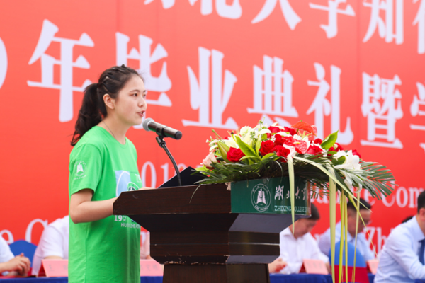 典礼仪式在雄壮的国歌声中开幕。副校长钟春敏宣读学士学位授予决定。校党委副书记高志宏宣读优秀毕业生表彰决定。校领导为优秀毕业生代表颁奖。计算机与信息工程学院龙文佳老师作为教师代表发言,她回忆了与同学们在大学期间相处的难忘时光,表达了对同学们未来的美好祝福。优秀毕业生代表、粮食与食品工程学院王倩同学代表全体毕业生表达了对老师们的感激和祝福,与大家一起重温了大学美好的时光,表示将继续学习,积极进取,做自己人生的“掌舵者”,做知行文化和校园精神的“继承者”和“践行者”。