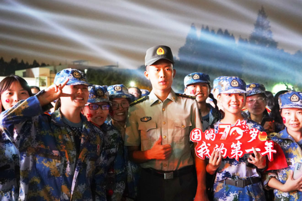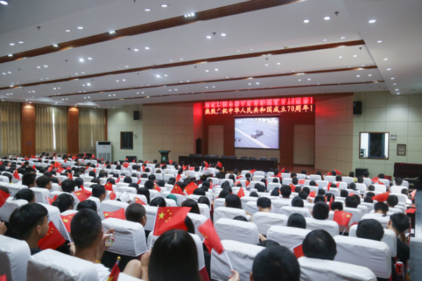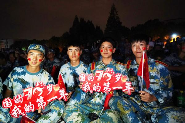 9月26日,在学校2019级新生军训成果汇报表演中,2800余名新生以自己独有的方式表达着对伟大祖国的祝福,同学们在花样方阵表演中,不断变幻“70”“1949”“2019”“祖国万岁”等字样。表演最后,全场师生齐声歌唱“我和我的祖国”,以独有的方式向新中国成立70周年献礼。