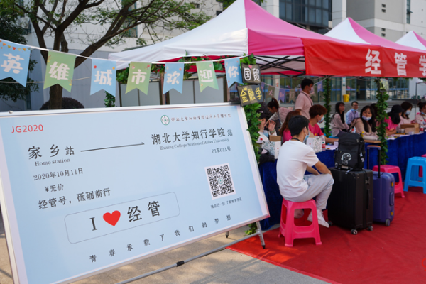 新生报到期间,校党委书记彭德忠、校长卜诗桢等校领导先后前往迎新现场检查指导迎新工作,嘱咐工作人员用心用情服务好学生和家长,并与新生及家长亲切交流,勉励同学们珍惜时光、勤奋学习、梦想成真。在疫情防控常态化背景下,学校新生入学秩序井然,报到手续方便快捷,处处体现着“以生为本”。体温检测、核验通知书、网上缴费、到学院报道、领取宿舍钥匙、激活校园卡一站式完成。在武汉站、武汉火车站、汉口火车站,学校安排了专用车辆接送新生到校。在报到区域,学校还安排了摆渡车,专车托运新生行李至学生宿舍。每名新生报到时还领取了学校精心准备的口罩、洗手液等爱心礼包。“错过了‘秋天的第一被奶茶’,还好知行没错过你”“你是知行永不折旧的固定资产”“你们来的这一天,天气很好,bug很少”迎新现场,各学院发挥各自学科特色,开展了富有创意的迎新活动,表达对新生的欢迎和祝福,并为新生送上了各式各样精美礼品。