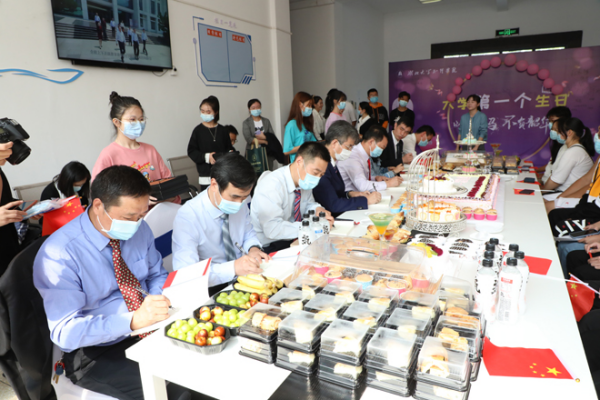 开学典礼结束后,学校还为当天11名过生日的同学举行了集体生日会,学校领导向小寿星们赠送了经典书籍、定制文具等礼品。生日会现场长达1.3米,高12厘米的生日蛋糕和百余个西式糕点及鸡尾酒全部都是粮食与食品工程学院师生利用专业所学制作。