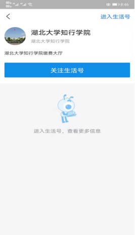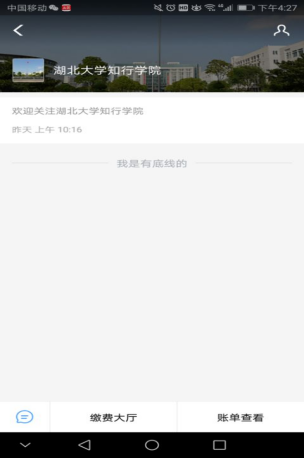4.关注完成后进入“湖北大学知行学院“点击缴费大厅 。