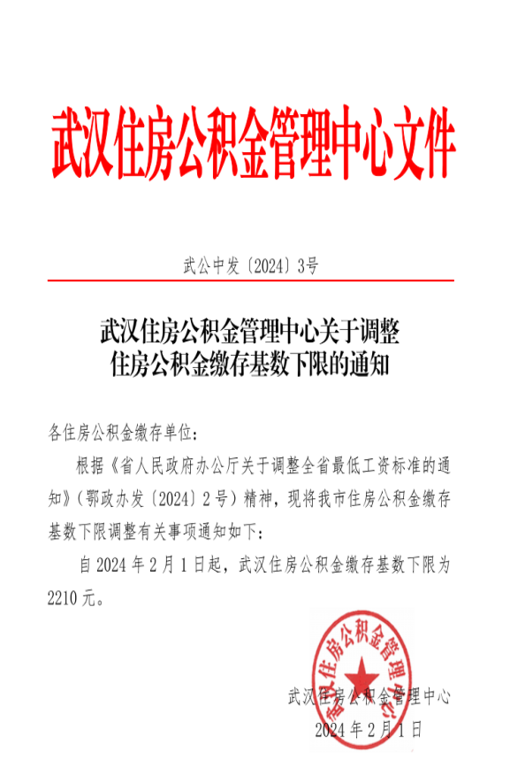 武汉住房公积金管理中心关于调整住房公积金缴存基数下限的通知