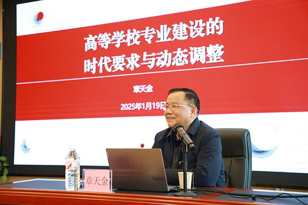 报告中,章天金教授以“高等学校建设的时代要求与动态调整”为题,从“国家关于专业建设与调整的战略要求”“湖北省产业发展对专业建设提出的新需求”“兄弟高校和湖北大学本部的主要做法”等三个方面进行了系统讲解。