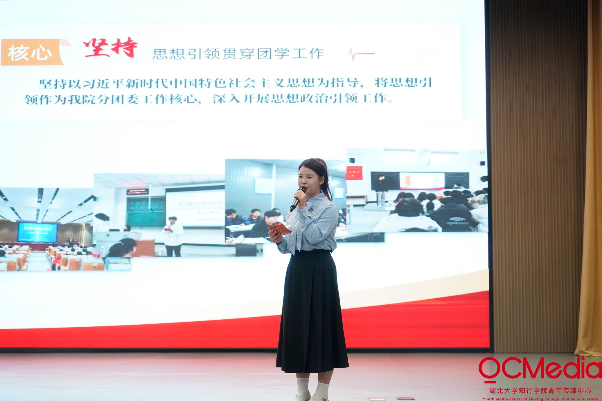 展示环节中,九个二级学院分团委学生干部代表聚焦共青团落实引领凝聚青年、组织动员青年、联系服务青年的基本职责,从年度工作思路、主要举措与显著成效,以及在引领学生服务学生方面开展的特色亮点工作等方面展开汇报。亮眼的工作成绩、规范的工作制度、创新的工作方式、多彩的团学活动和精彩的现场展示,充分反映出我校团学干部锐意进取、创先争优、实干担当的良好精神风貌。