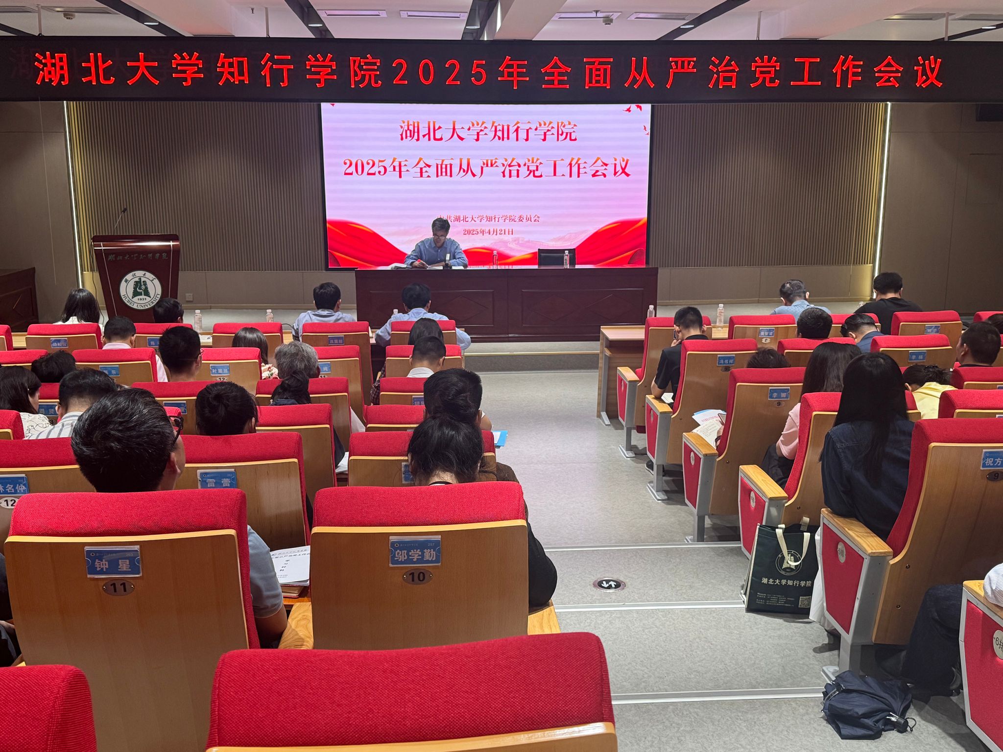 4月21日下午,学校在知远楼202弘智厅召开2025年全面从严治党工作会议,学习传达上级会议精神,部署安排学校重点工作。党委书记彭德忠主持会议并讲话。全体在校校领导、全校中层干部、各党总支委员、直属党支部委员参加会议。