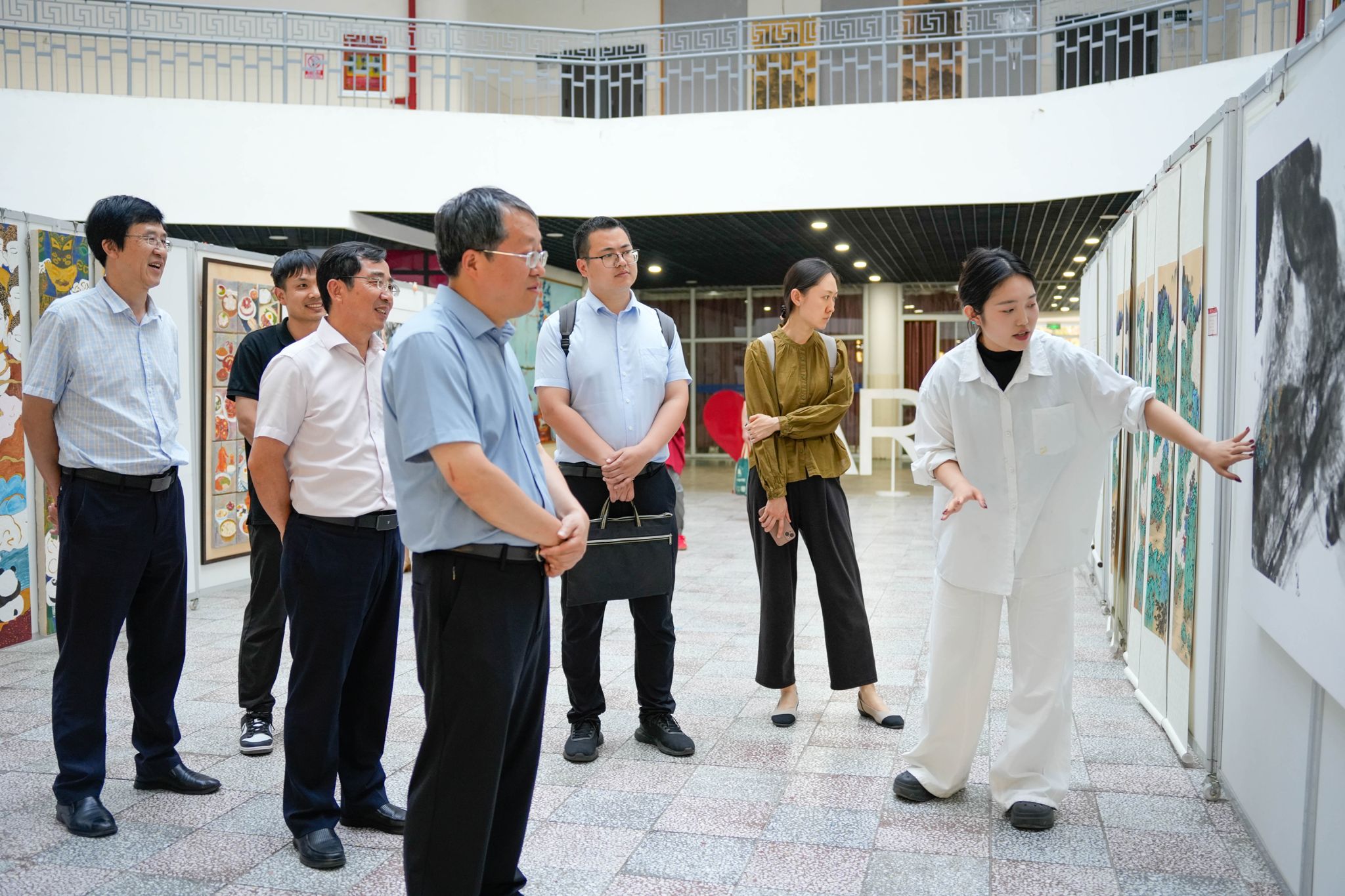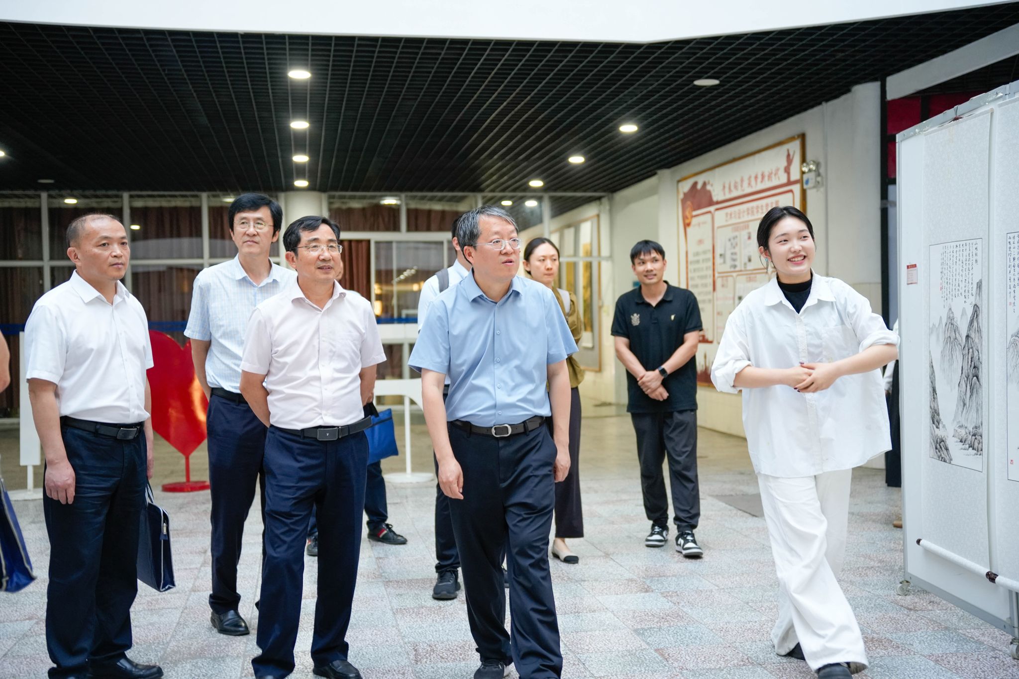 会后,唐茂一行在学校领导的陪同下,参观了学校粮食科技成果展,并深入到学校教学楼、图书馆、艺术与设计学院毕业设计作品展区等场所考察调研,高度赞赏学校人才培养和粮食专业特色发展。