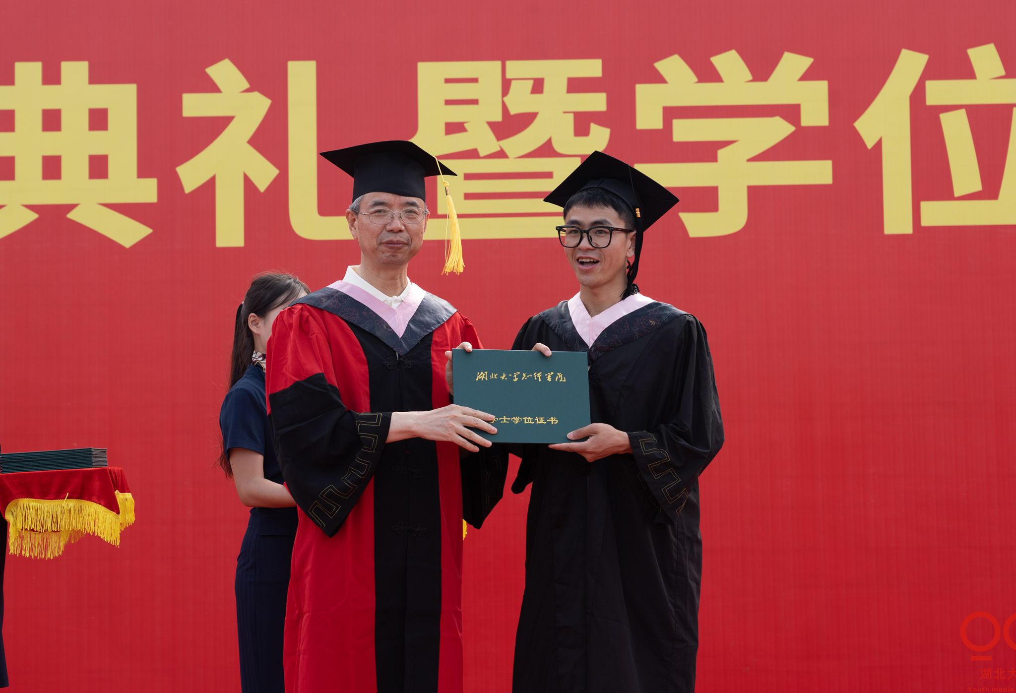 学位授予仪式中,学位评定委员会委员共同为毕业生拨穗正冠。期间,各学院也通过形式多样的方式欢送毕业生扬帆远航,表达着对同学们的深情祝福。