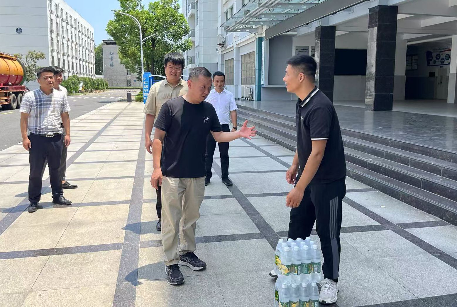 何顺进一行先后前往相关工程施工现场、招生工作办公室、学生就业创业指导服务中心和校园执勤门岗,详细询问各岗位工作情况,对冒着酷暑辛勤值守的教职员工和后勤服务人员、安保人员表示感谢,叮嘱他们要注意劳逸结合,防暑降温,保重身体。同时要求相关职能部门要进一步细化工作措施,合理安排好作息时间,牢记安全生产责任,积极推进各项工作保质保量完成,为新学期开学做好充分准备。