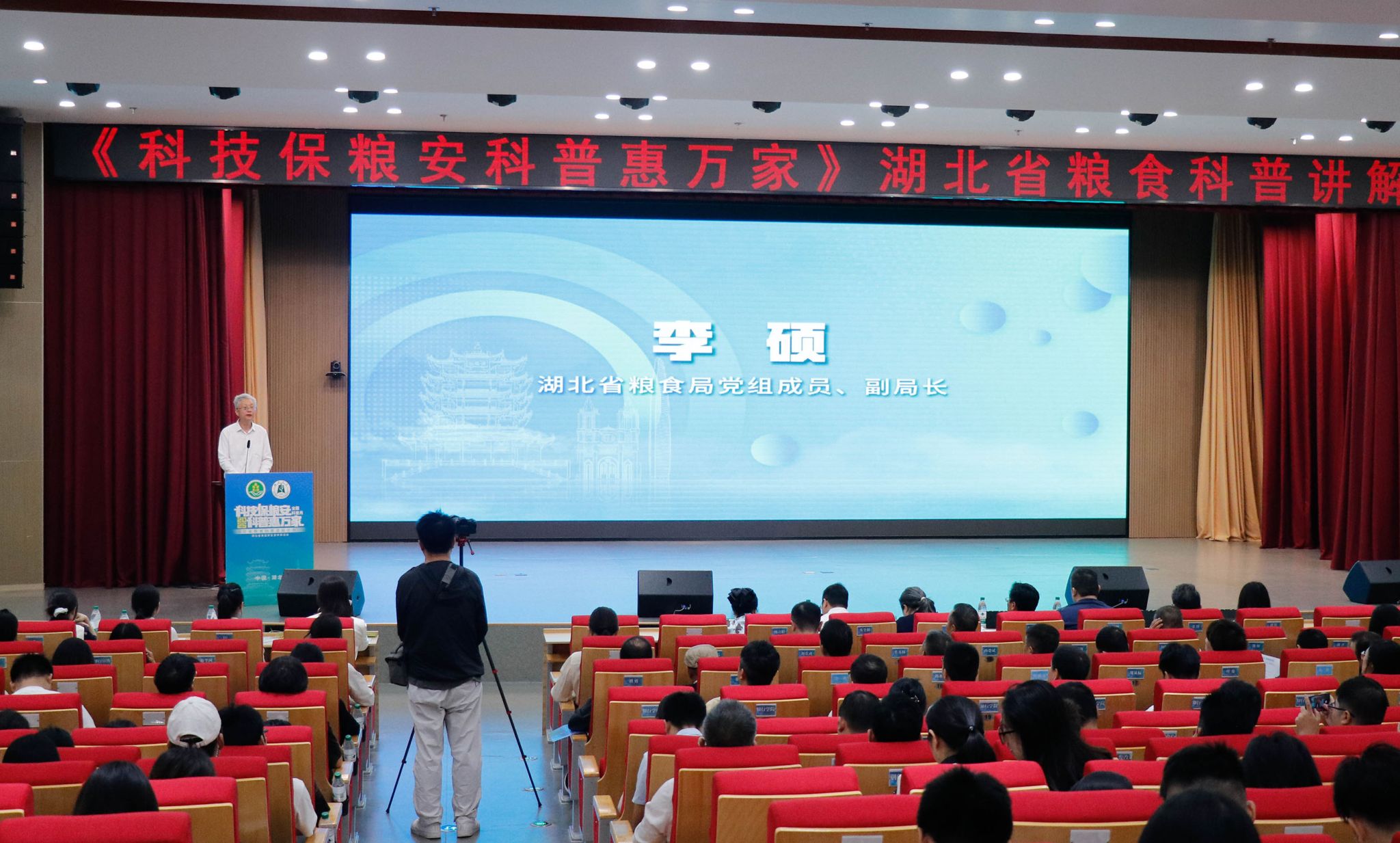 湖北省粮食局党组成员、副局长李硕在讲话中指出,近年来,湖北省粮食局深入贯彻“科技是第一生产力,创新是第一动力”理念,突出机制创新和政策引导,扎实推进科技兴粮工程,并在全国粮食行业率先探索科技揭榜制,研发了一批有推广价值的优秀科技成果,通过荆楚粮油精品展交会、中国粮交大会等省内外重大展会,湖北省粮食行业各类科技成果在全国范围推广,获得良好效果。他充分肯定我校“将课堂融入粮仓、让论文扎根田野”的育人特色,感谢学校为“科技兴粮”提供了有力的人才与智力支持,希望以本次科普比赛为契机,进一步激发社会公众对粮食科技与粮食安全的关注和参与。